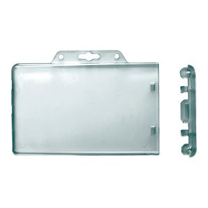 Εξαιρετική θήκη ασφαλείας για κάρτα κρεμαστή χωρητικότητας εώς 2 καρτών, άκαμπτη, πλαστική, οριζόντια τοποθέτηση, credit card, 2cardsx30mil (750mic) ή 1cardx60mil (1,500mic), πρόσοψη κουμπωτή στην πλάτη για εσωτερικό κλείδωμα της κάρτας, αφαίρεση κάρτας μόνο με σπάσιμο κουμπώματος, υποδοχή για slot hole, Max. Card. 54x86mm, εξωτερικές διαστάσεις 60x108mm, Badge Holder, 1840-6040.