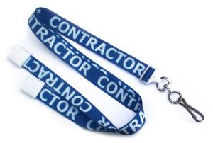 Κρεμαστό πάνινο κολιέ προτυπωμένο 5/8''(16mm) φάρδος x 38''(965mm) μήκος με break-away χρώματος μπλε με λευκή εκτύπωση CONTRACTOR, attachment με μεταλλικό άγκιστρο, 2138-5215Εταιρία: ARION PLUS Κωδικός: 04.05.0056