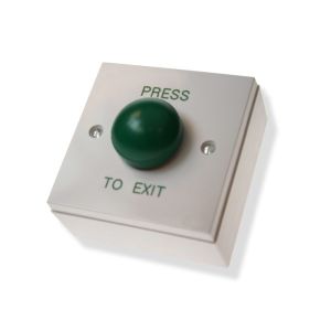 Εξαιρετικής ποιότητας μπουτόν εξόδου, απο γυαλιστερό πλαστικό, επιφανειακής τοποθέτησης, με επιγραφές «PRESS TO EXIT» ή «DOOR RELEASE» κατ’ επιλογή, μπουτόν πράσινου χρώματος σε σχήμα θόλου. ICS DRB-009F.
